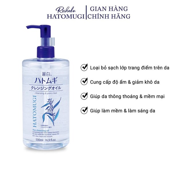 Dầu Tẩy Trang Hatomugi Ý Dĩ Dưỡng Ẩm, Làm Sáng Da 500ml