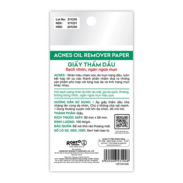 Giấy Thấm Dầu Acnes Kiểm Soát Nhờn, Ngừa Mụn 100 Tờ
