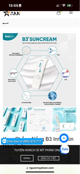 Kem chống nắng b3 innoskin chống nắng kiềm dầu suốt 24h