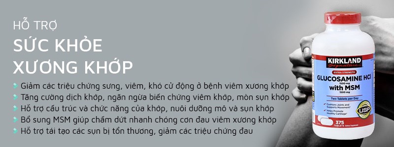 Kirkland Glucosamine hỗ trợ xuơng khớp HCL 1500mg 375 Viên