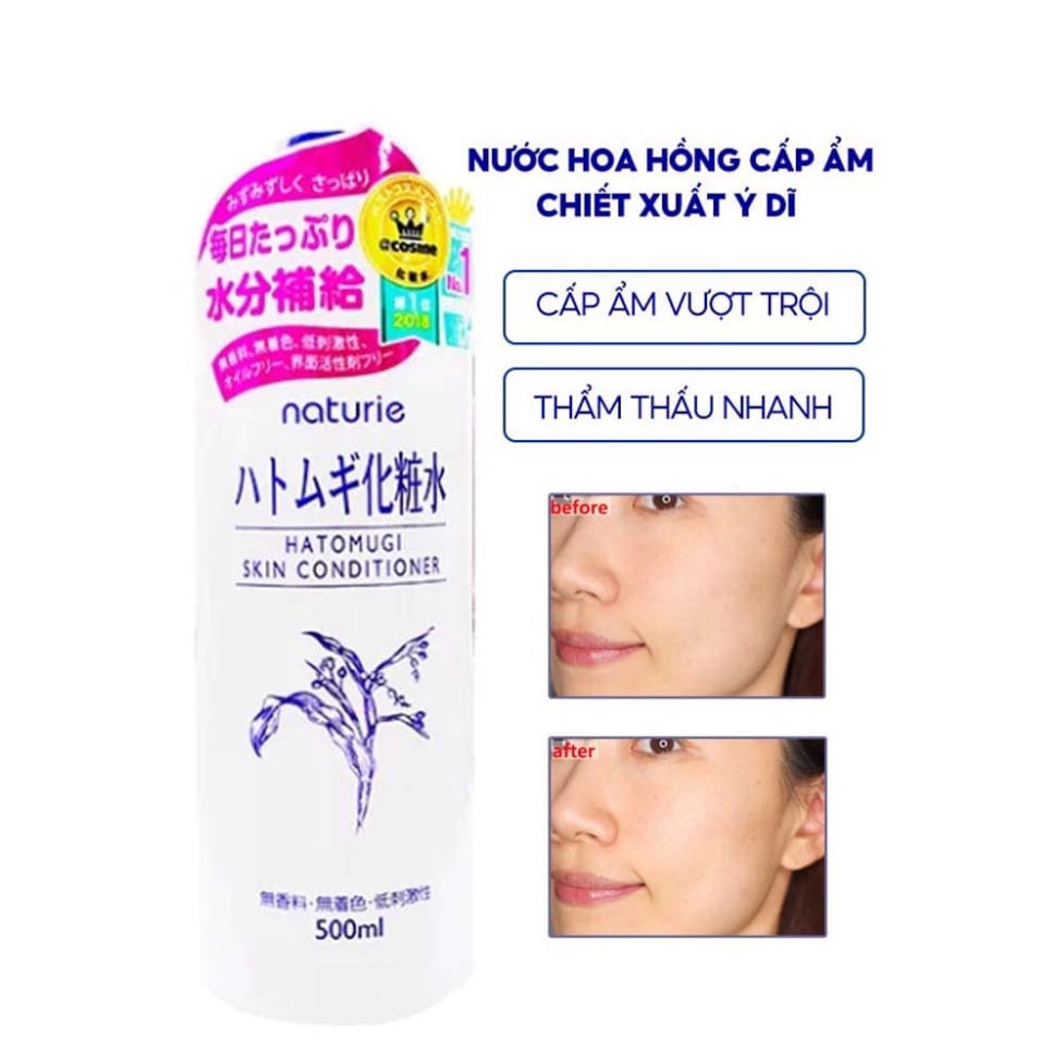 Nước hoa hồng Ý Dĩ Hatomugi Naturie Skin Conditioner 500ml