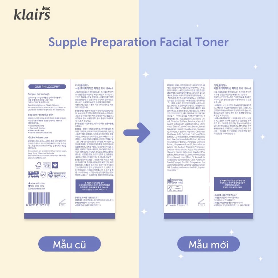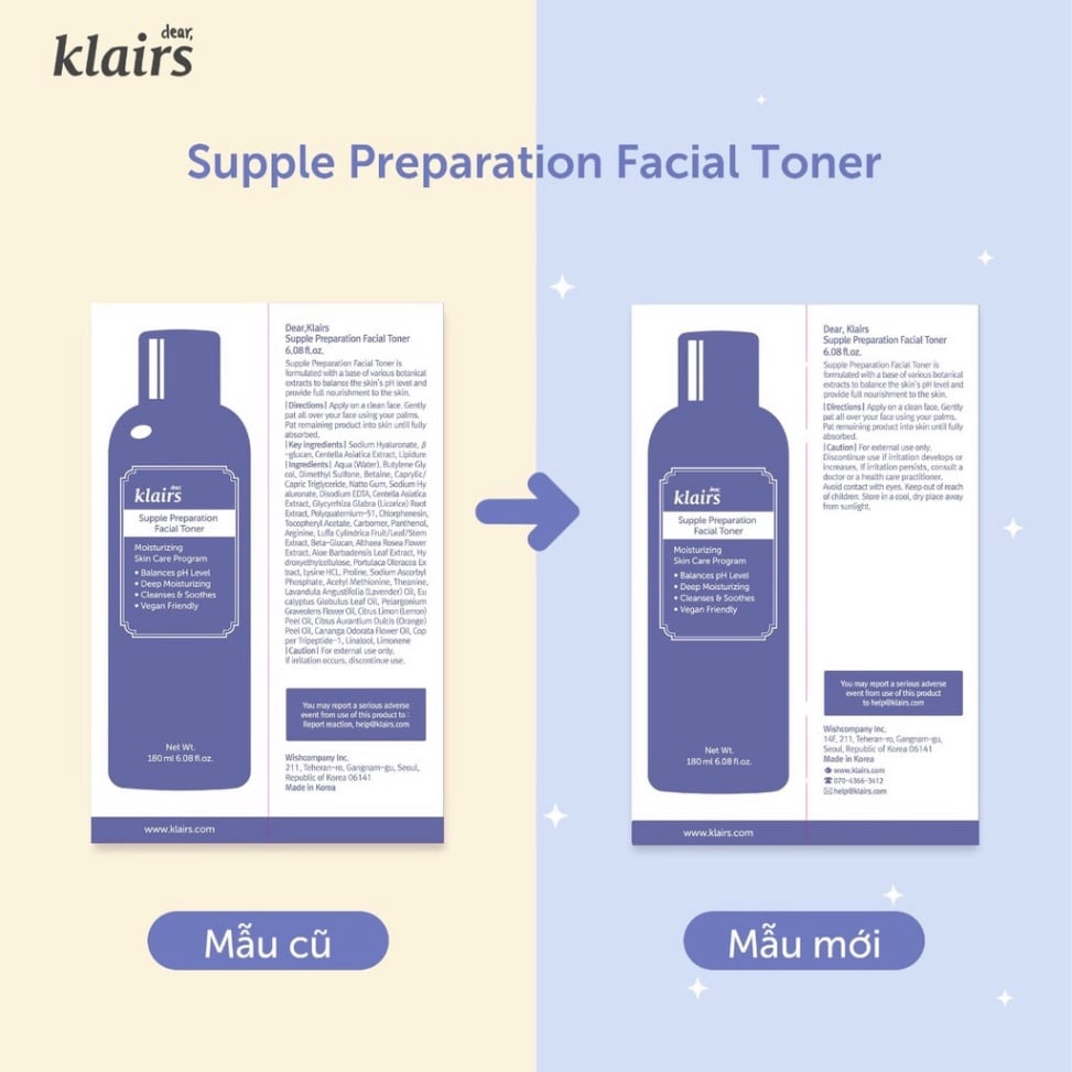 * Update: Với triết lý mong muốn mang tới những điều tốt đẹp nhất cho làn da, thương hiệu dear,Klairs luôn thay đổi và chuyển mình mỗi ngày theo hướng tích cực hơn để đáp ứng niềm tin của người dùng. Chính vì thế, Nước Hoa Hồng Klairs Supple Preparation Facial Toner lại được cẩn trọng hơn hết khi thay đổi từ bao bì bên ngoài cho đến thành phần bên trong, cụ thể như sau: