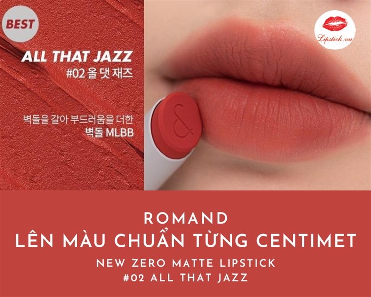 Son thỏi Romand zero matte #02 đỏ gạch mlbb