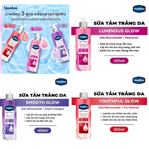 Sữa Tắm Vaseline Body Wash Gluta Glow 10x Đỏ 425ml
