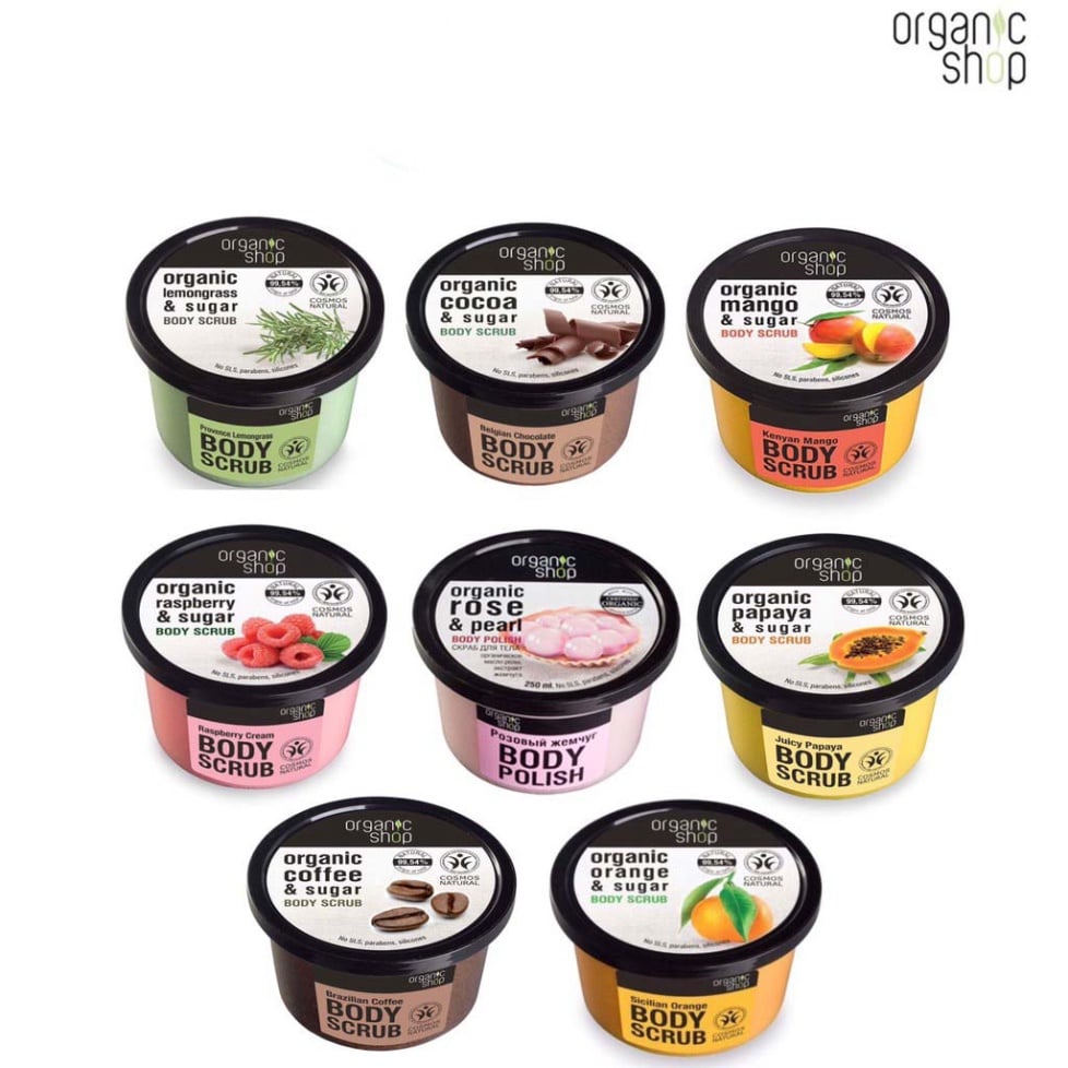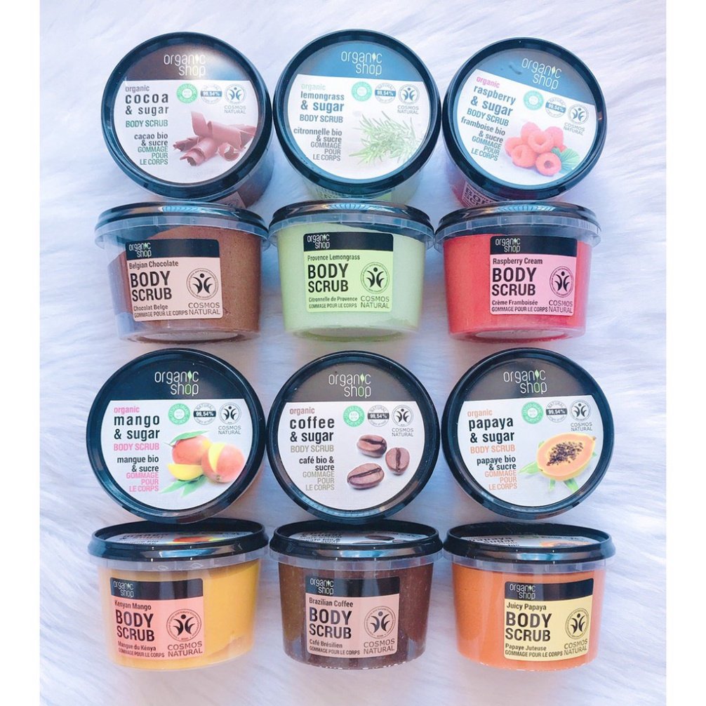 ☘️ Tẩy tế bào chết body hữu cơ Organic Shop, dòng sản phẩm hữu cơ ko chất tẩy, ko chất bảo quản và các hóa chất có hại cho da như: parabens,dầu khoáng,thuốc nhuộm tổng hợp,chất tạo mùi.