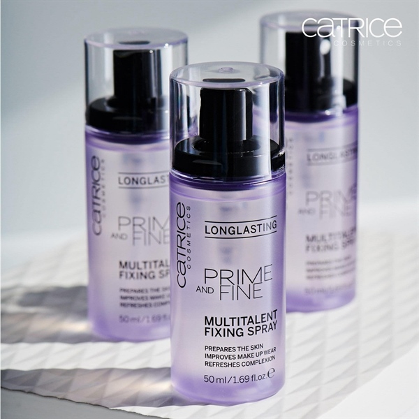 XỊT KHÓA NỀN CĂNG BÓNG DA CATRICE LONG LASTING PRIME AND FINE MULTITALENT FIXING SPRAY 50ML